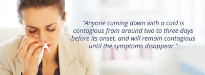 Instead of going for a run, take a walk, for example. She says the contagious period is the same for the cold and the flu, as colds are caused by viruses as well. Cold symptoms that should keep you home. 3 however, many people have a runny nose (rhinorrhea) due to allergies. The number of days to take off work depends on the severity of the illness, and the nature of the work and workplace.